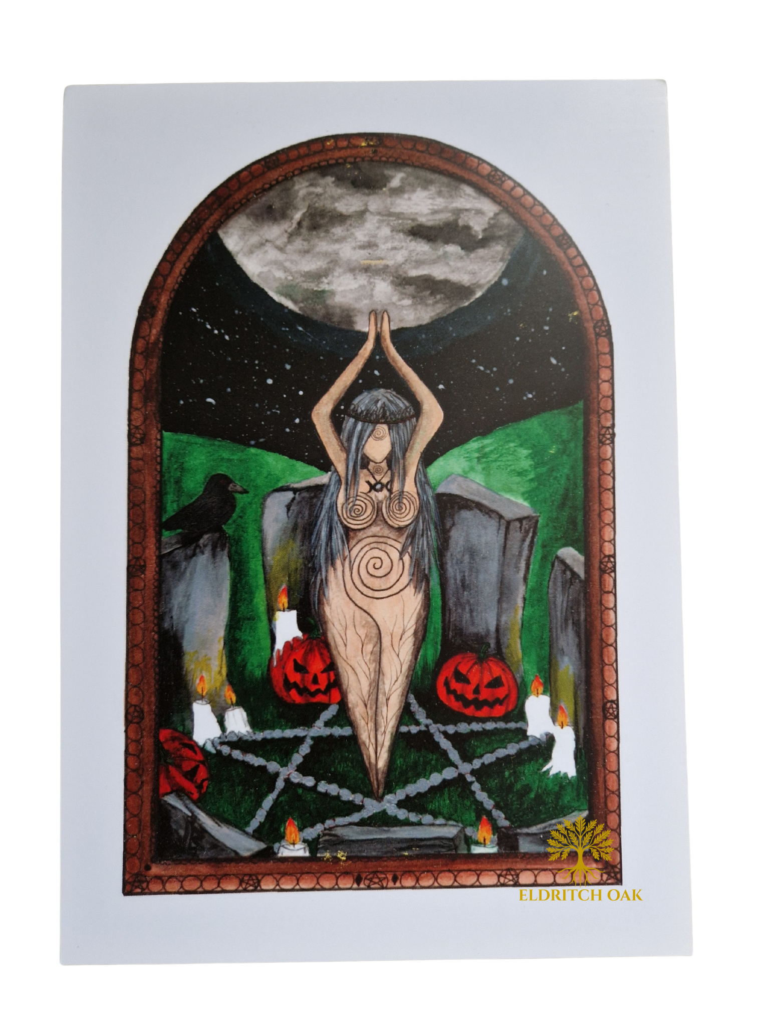 This is an A4 print of the Goddess in an Halloween/Samhain theme. This was painted by the talented Vicky of The Dragonfly Whispers, please check out the rest of the collection for more beautiful prints and original paintings.