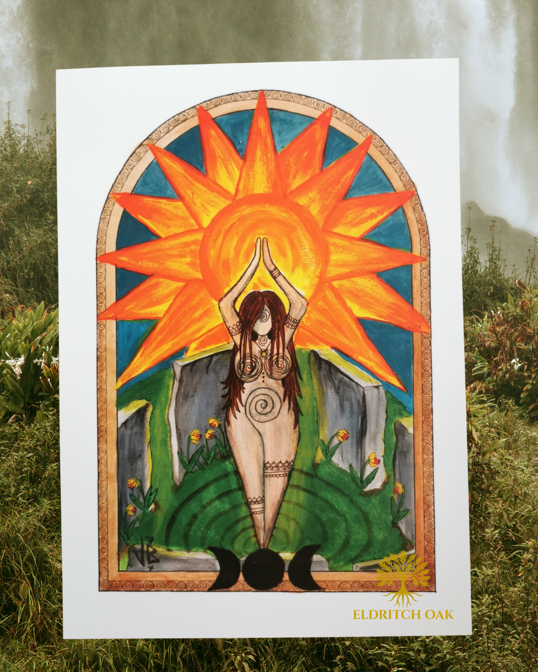 This is an A4 print of the Goddess in an Spring theme. This was painted by the talented Vicky of The Dragonfly Whispers, please check out the rest of the collection for more beautiful prints and original paintings.
