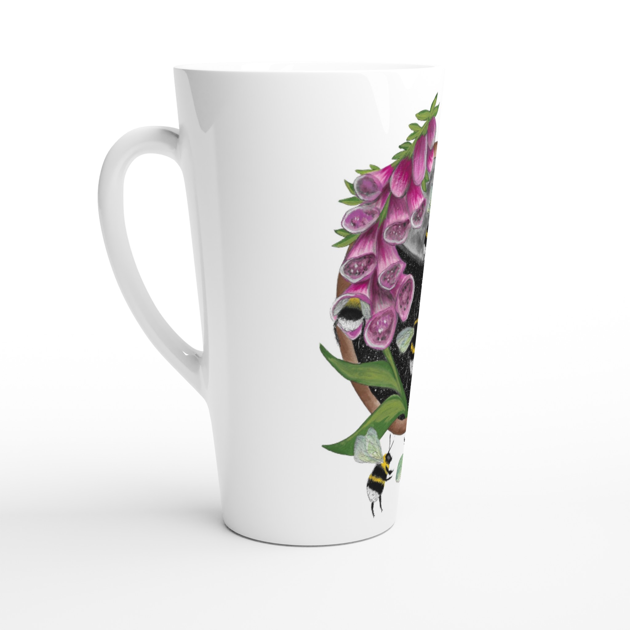 Bumble bee and foxglove cup | White Latte 17oz Ceramic Mug