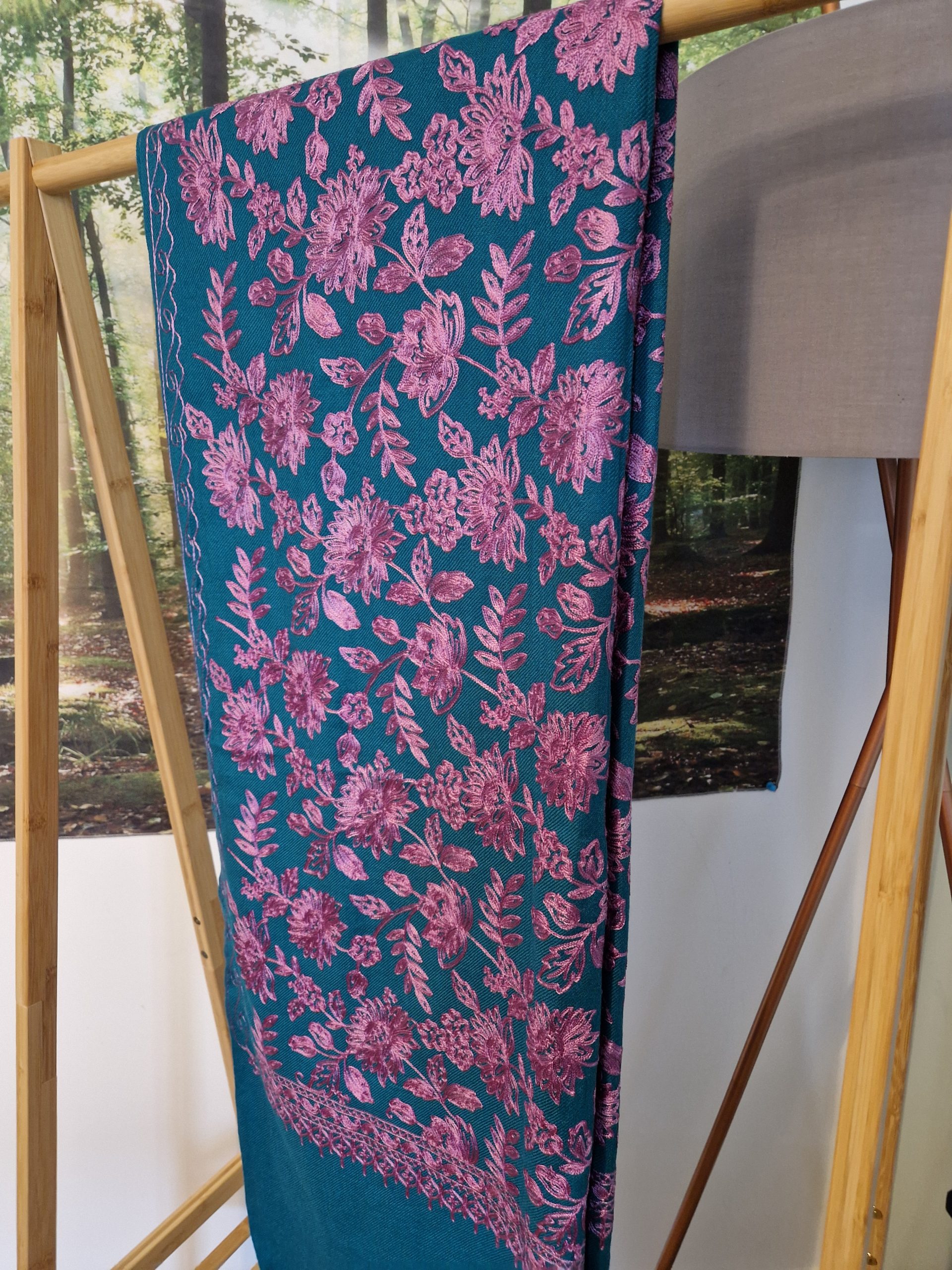 Embroidered Teal and Paisley Shawl with Diamante