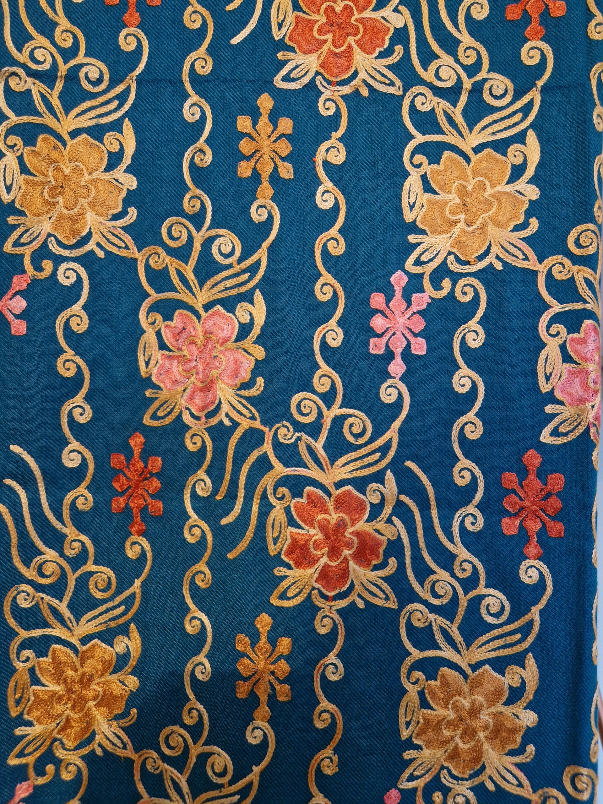 Beautiful Embroidered Teal and Gold Shawl.