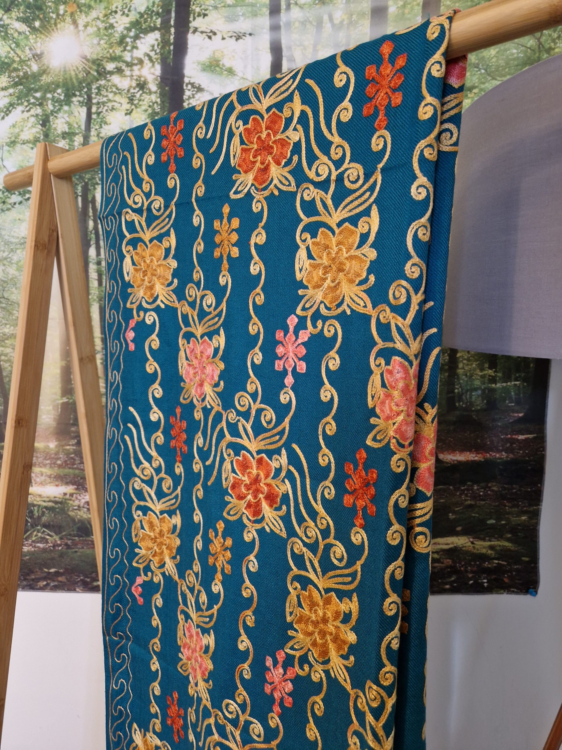 Embroidered Teal and Gold Shawl