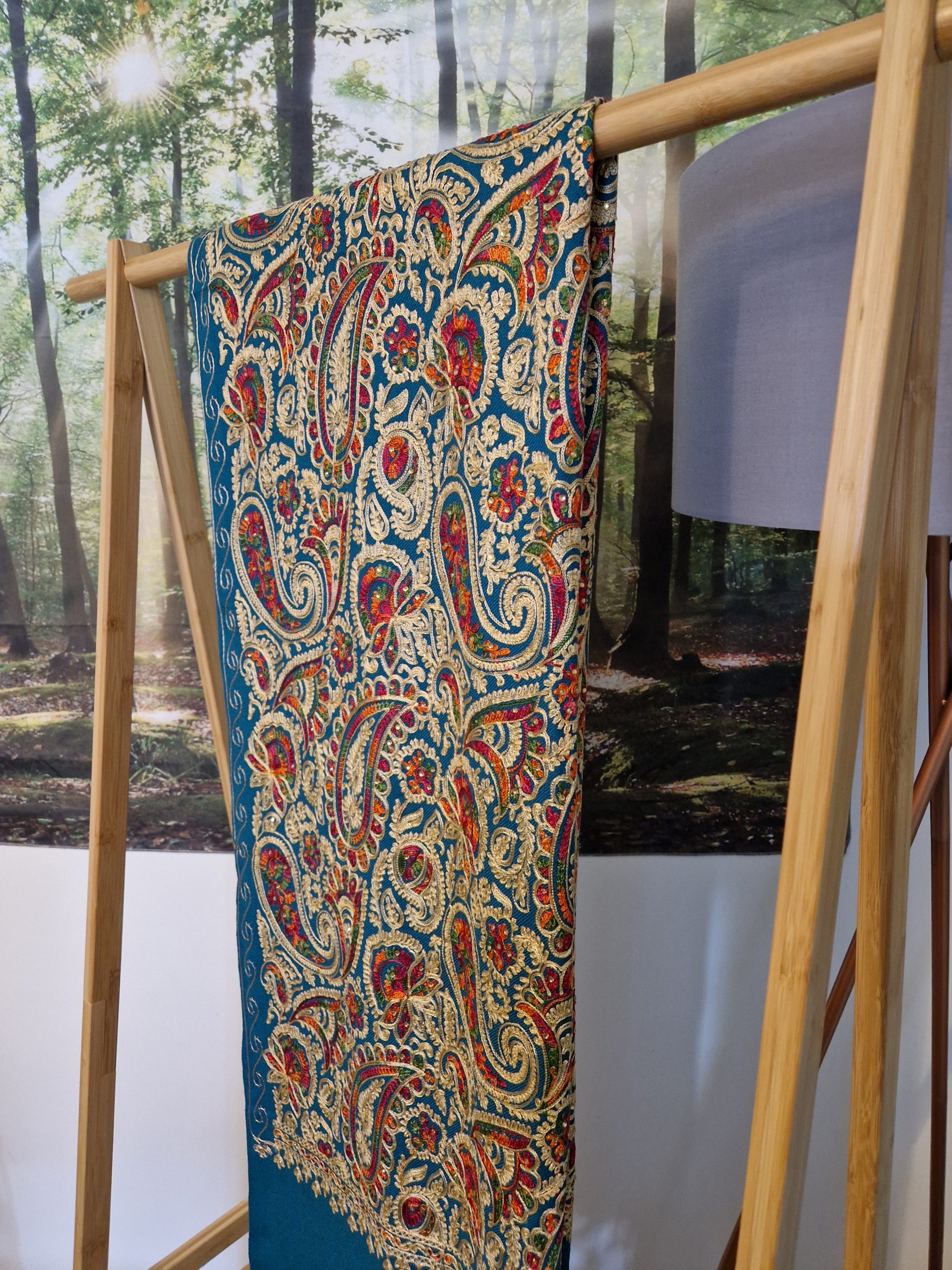 Beautiful Embroidered Teal and Paisley Shawl with Diamante.