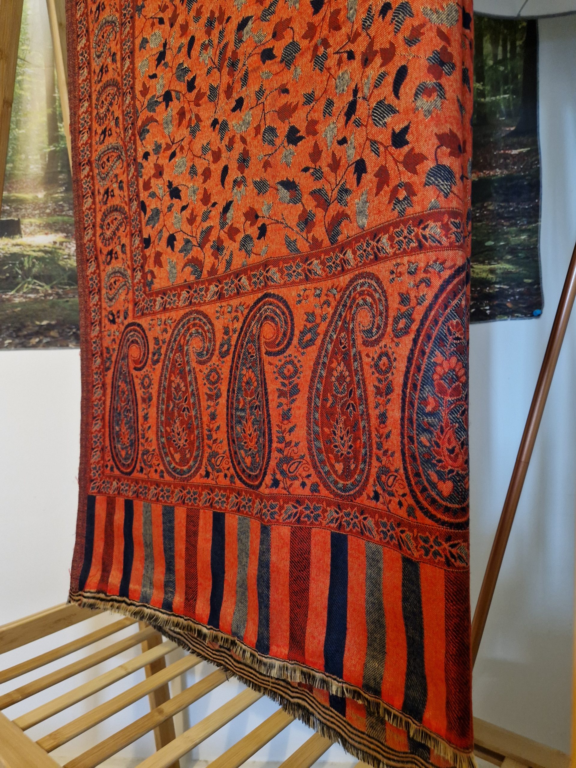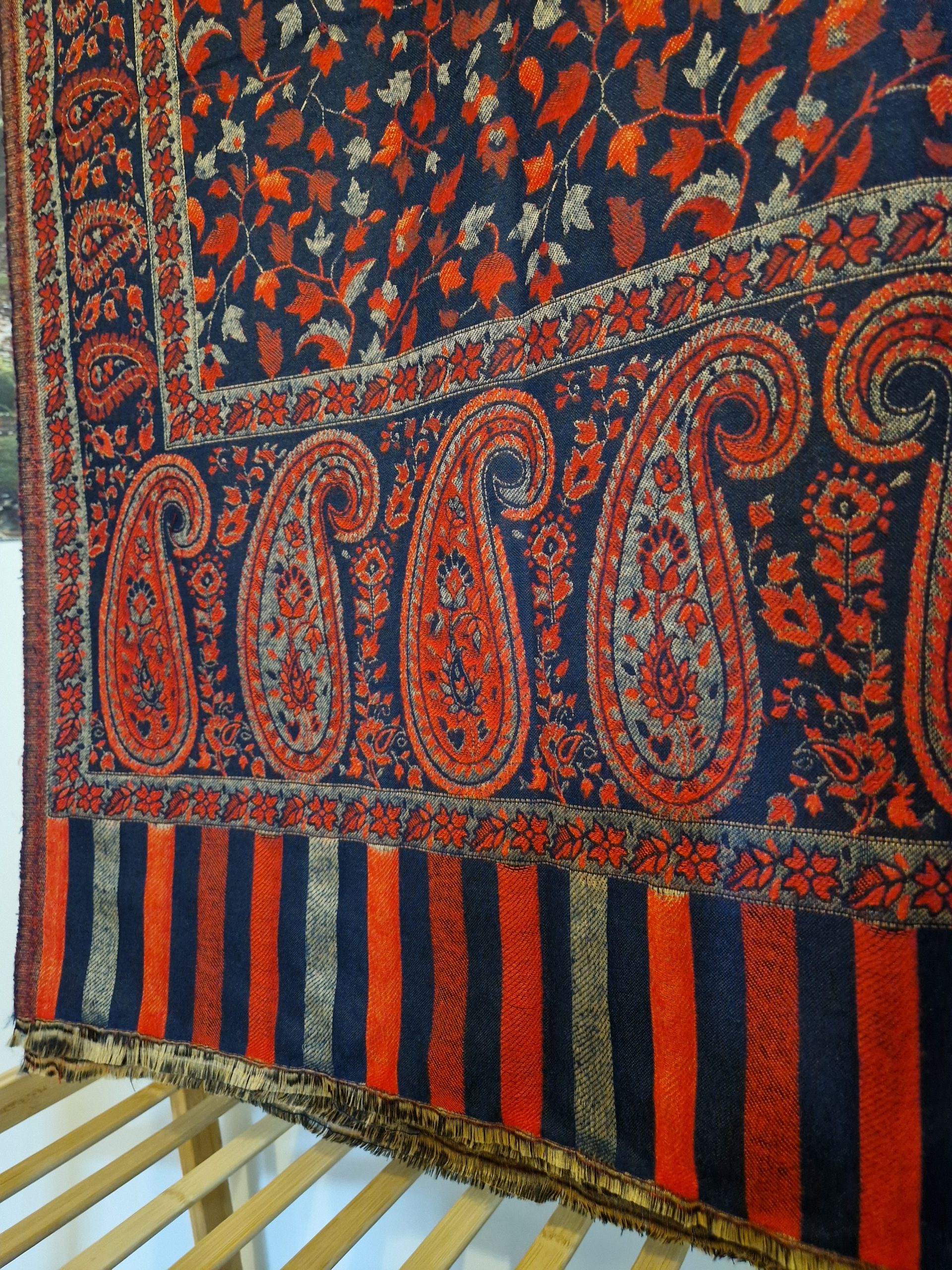 Beautiful Extra large Shawl Paisley and reversible – Navy & Orange.